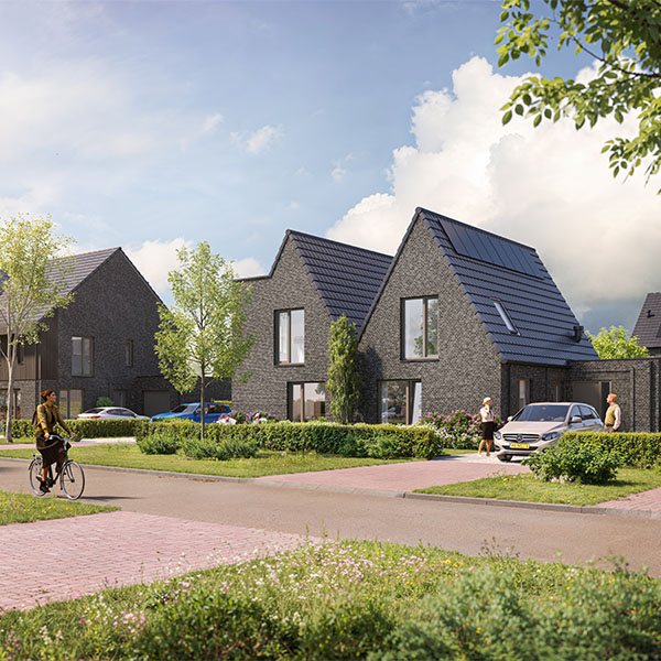 De exterieurbeelden geven een prachtig beeld van hoe de woningen eruit zullen zien. Bekijk ook de vogelvluchten, want dat geeft een goed totaalbeeld van het gebied. Daarnaast zijn de gevelbeelden per bouwnummer online beschikbaar, zodat je de details nog beter kunt bekijken.